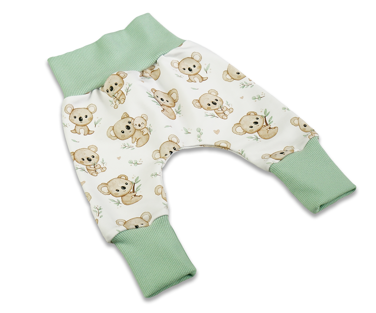 - Wygodne spodnie z wysokim stanem i mięciutkim ściągaczem, który nie będzie uciskał maluszka w brzuszek, a sprawi, że ubranko będzie trzymało się na odpowiednim miejscu.