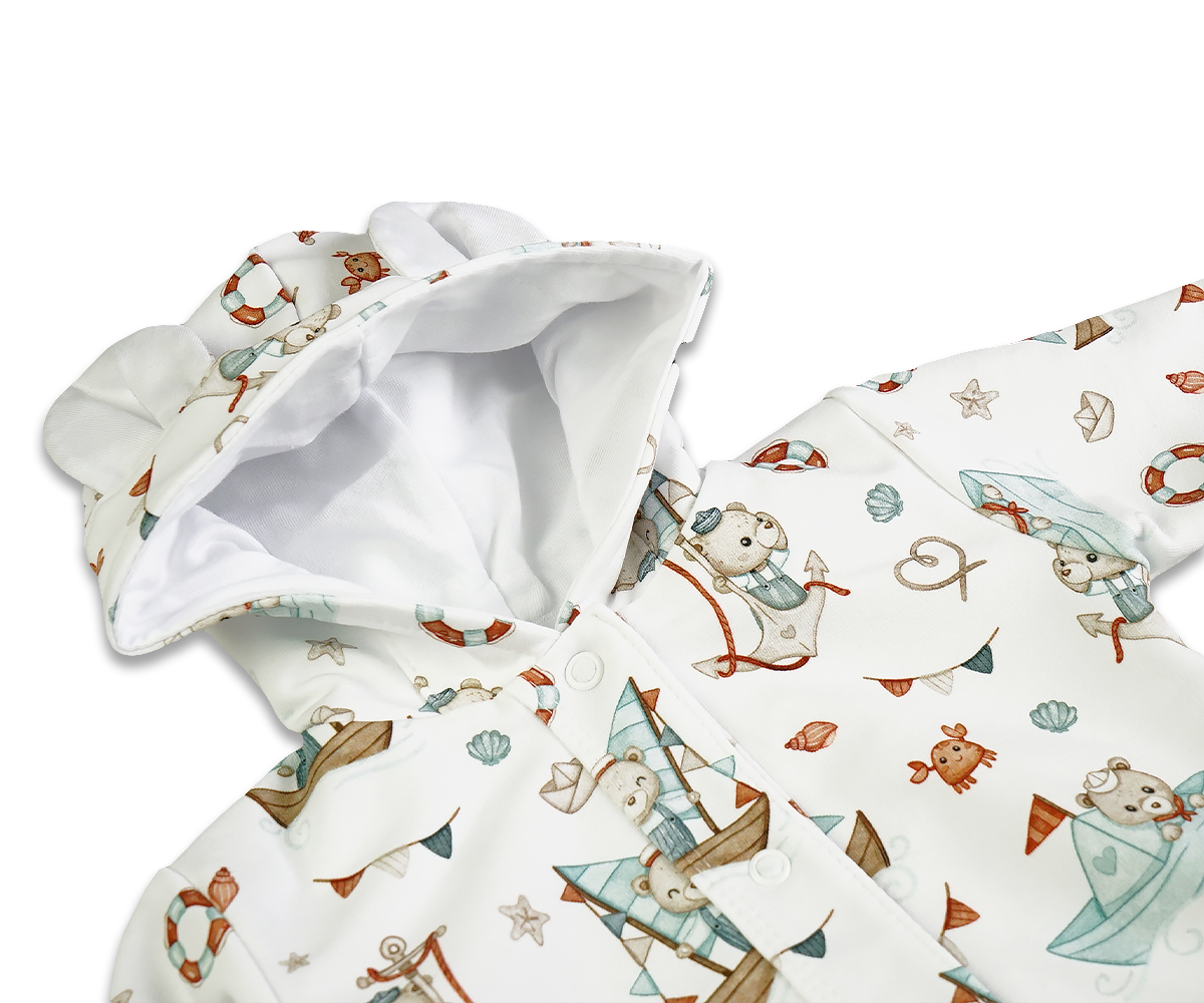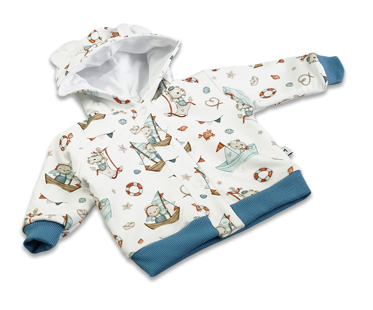 - Bluza rozpinana z przodu na napki, wykończona miękkim ściągaczem przy rączkach oraz kapturkiem z misiowymi uszkami, który nadaje uroku.