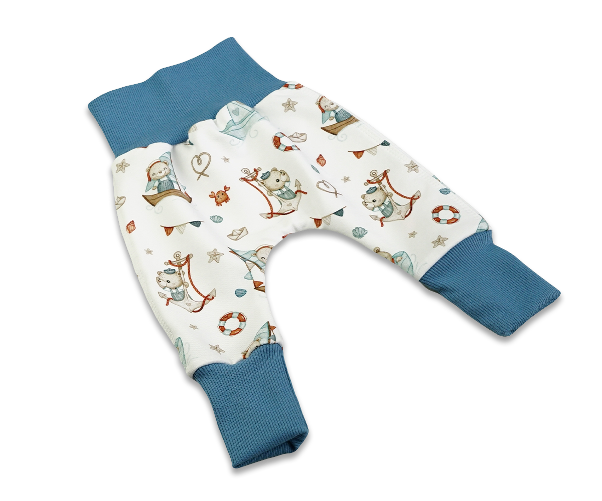 - Wygodne spodnie z wysokim stanem i mięciutkim ściągaczem, który nie będzie uciskał maluszka w brzuszek, a sprawi, że ubranko będzie trzymało się na odpowiednim miejscu.