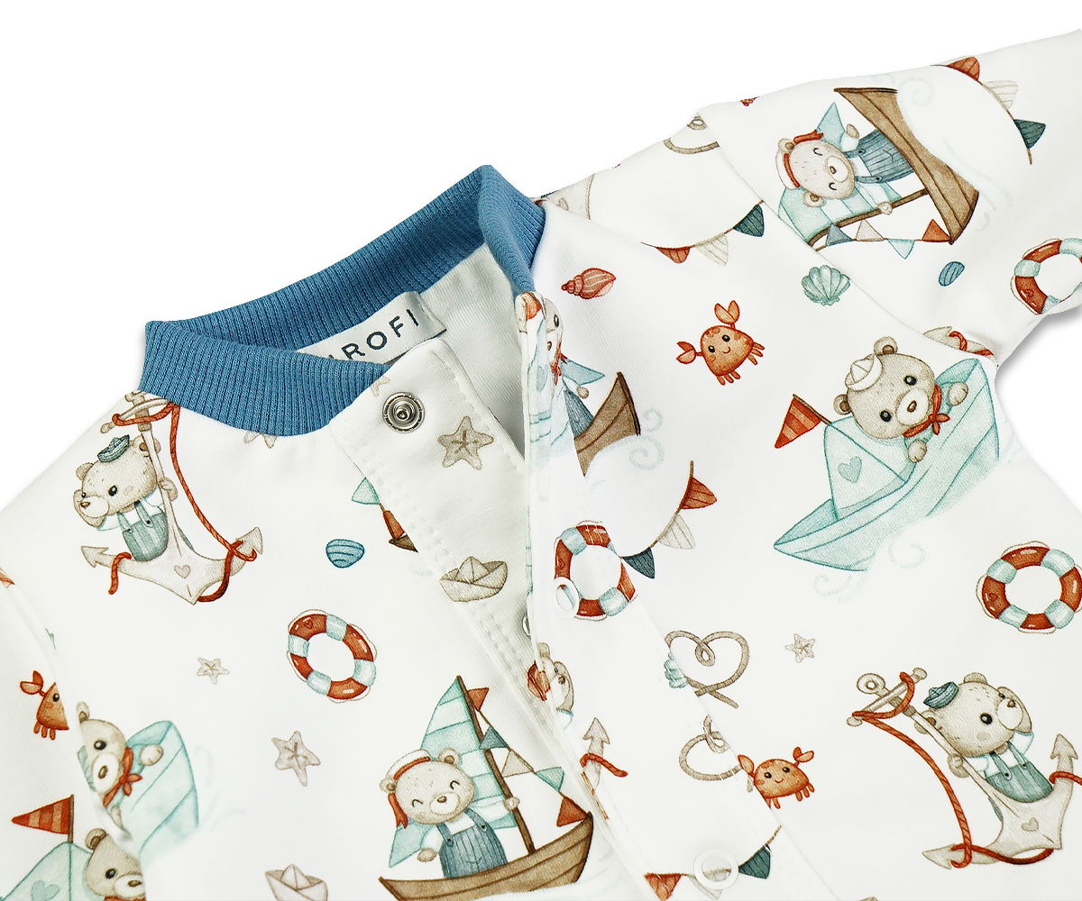 3. Detale - Podczas tworzenia tej kolekcji zadbaliśmy o najdrobniejsze detale takie jak: metki produktowe z nową szatą graficzną, żakardy i taśmy z logo Mrofi oraz satynowe metki z przepisem prania oraz rozmiarem. Do zapięć w ubrankach zostały użyte bezniklowe, antyalergiczne napki.