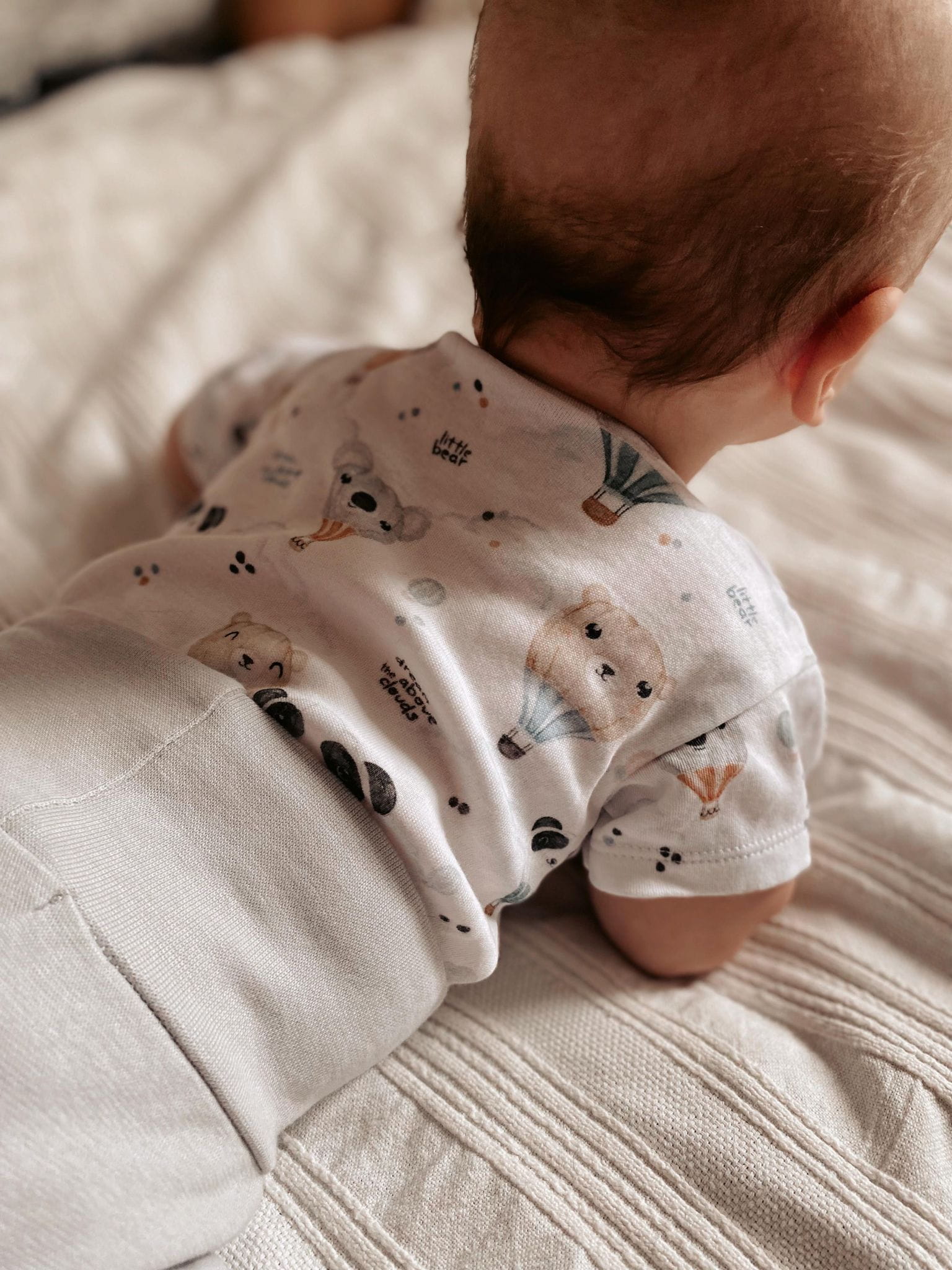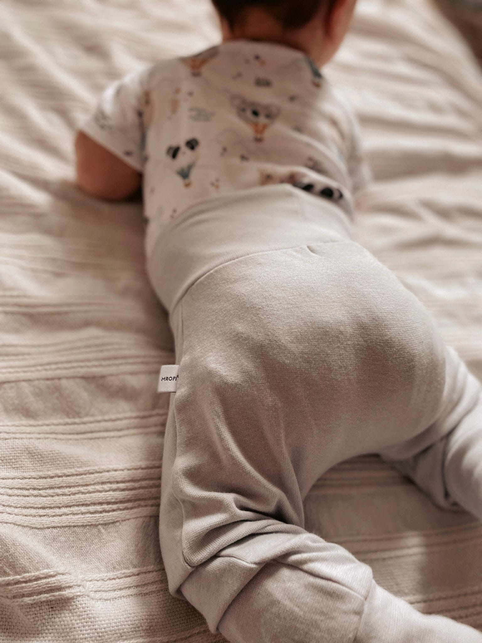 Spodnie to element, który coraz częściej pojawia się w wyprawce dla niemowlaków. Nasze spodnie niemowlęce są wygodne, ponieważ posiadają wysoki stan więc pieluszka bez problemu się zmieści. Wygodę zapewnia też mięciutki ściągacz, który nie uciska dziecka w brzuszek ale pozwala na to, żeby spodnie trzymały się w odpowiednim miejscu. Bardzo ważne przy wyborze spodni dla niemowlaka jest to żeby były one wykonane z delikatnego, oddychającego materiału – nasze są wykonane z bawełny organicznej także będą idealne. Pamiętajmy, że jeżeli decydujemy się na spodnie będą potrzebne też skarpetki niemowlęce.